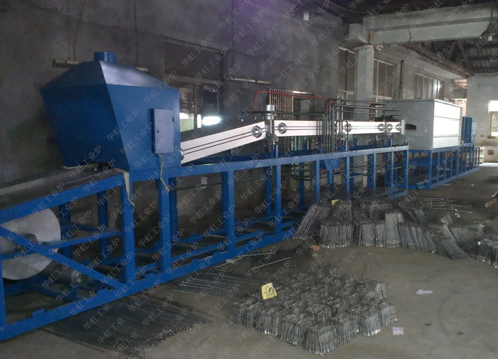 連續式高溫釬焊爐發布日期:2023/9/8 19:05:20 所屬分類: 釬焊爐 瀏覽次數:2138次 連續式高溫釬焊爐為連續作業式熱處理生產線。主要用于控制成型的粉末冶金制品,在可控氣氛條件下進行理想的連續釬焊工藝流程。該生產線具有控制先進,節能顯著,維修容易,品質保證等特點,技術水平基本可與原版進口品質同步。連續式高溫釬焊爐加熱爐體顯長方體,用型鋼、板材焊接而成,用不銹鋼制作的長型爐膽置于爐膛中,加熱元件置于爐膽上、下兩側,爐膛與爐殼之間用保溫材料填充,水冷套分二層結構,內層用不銹鋼焊接而成,外套有4mmA3鐵板制作的水槽,水槽三段每段用2寸鋼管連接,在高壓水泵的作用下可循環水冷卻;加熱爐體與水冷套連接,網帶穿于爐膽內,在轉動機構的驅動下,網帶進料口向水冷套進料口運轉。 |