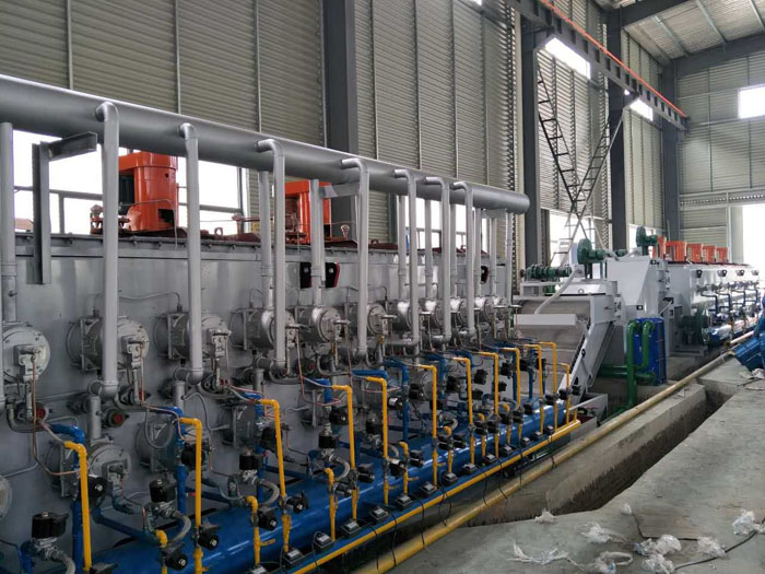 2.7爐內設有3道軟簾門(火焰簾),爐口再裝有活動爐門,可防止爐內保護氣氛的流失,減少甲醇的用量,降低生產成本,同時解決軟簾門檢修頻繁的問題。 2.8為保證爐膛內爐溫的均勻性,采用4區加熱4臺變壓器進行控制。 2.9為防止設備加熱元件受熱后的延伸性以及方便更換,在爐體兩側的加熱元件引出棒的連接導線均為耐高溫軟線連接。 2.10為了滿足客戶的產量要求,在淬火一區不發生較大的降溫的同時,加密淬火一區的輻射管數量,增大淬火一區的功率,在不影響產品工藝的前提下,達到增加產能節約電能的目的。 2.11淬火爐落料口處在砌爐過程中采用梯型式結構,以防止長期使用后產生積料,減少工件的損耗和堆積。 上一個:鐘罩式退火爐 |